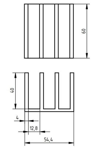 - heat dissipated from each fin: $$Q_{f}=\frac{\alpha U}{m} \cdot \left( T_{s} - T_{a} \right) \cdot tanh(mL)$$ where: ##\alpha## - heat transfer coefficient, ##U## - circumference of the fin's cross-section, ##m=\sqrt{\frac{\alpha U}{\lambda A_{f}}}##, ##T_{s}## - temperature of the bottom surface, ##T_{a}## - ambient temperature, ##\lambda## - thermal conductivity, ##A_{f}## - area of the fin's cross-section.