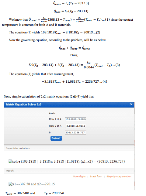 I did simulation of this problem and Tcontact was around 304K. Now I need to compare simulation with theoretical value. However, I still could not get the answer