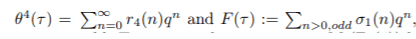 Let me use the result that the ##r_4(n)## are given by ## 8 \Omega_1(n)## for ##n## odd and ##24 \sigma_1(n_0) ## for ##n_0## the odd divisors of ##n##. So I get ##r_4(4)=24(3+1)=96=a_4## and so since ## T_2 \theta^4(t)= \theta^4(t)+16F(t) => b_2 = a_4 ##. But now since ##F(t)## only has odd coefficients, this implies that ##a_2 = b_2=a_4 ## which of course it isn't.