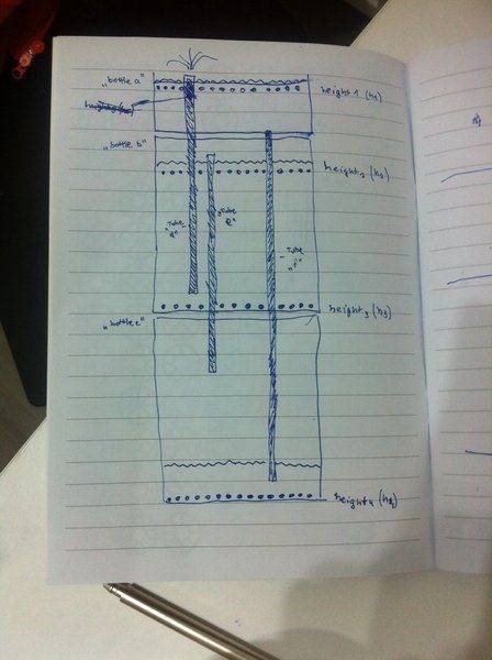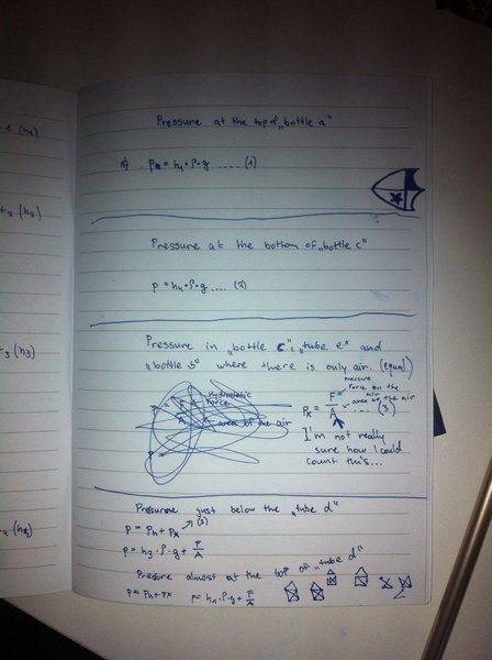 But in the end I totally confused myself: so what does the pressure in bottle b depend on? Is it the hydrostatic force? Am I even asking the right question? I got into a loop and I need to get out of it, help me please!