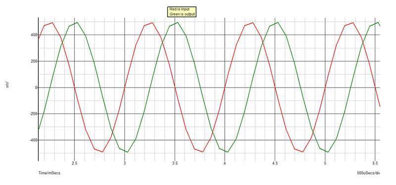 As you vary the resistance of the resistor, the phase of the resulting output at the intersection of R & C shifts with respect to the input.