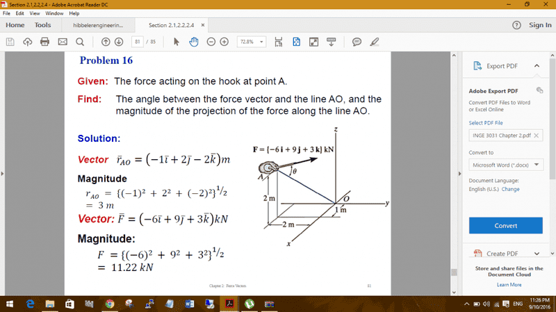 Then I got the magnitude component of F along AO by finding the unit vector of rao and multiplying that using the dot product with F