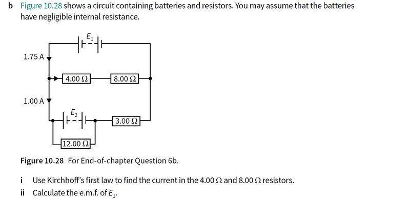 But the answer sheet uses 0.75A instead of 1.75A to find EMF of E1.