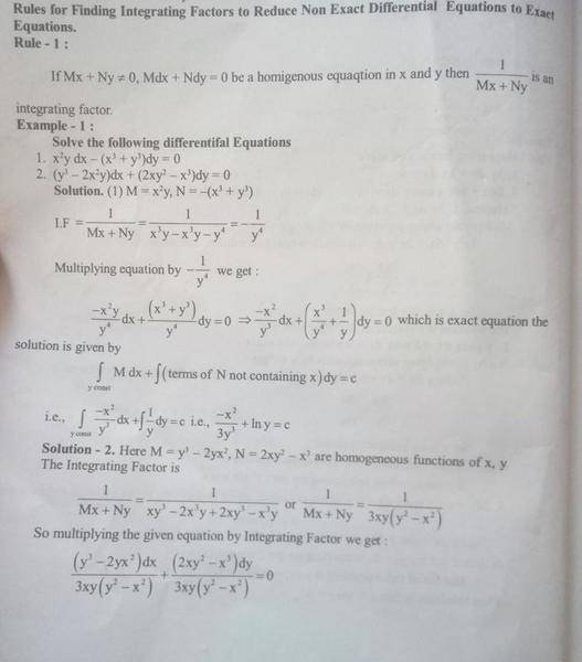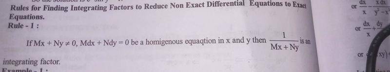 The given equation is a non exact homogeneous equation and is in the form