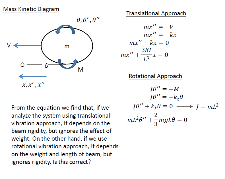 • One participant argues that a precise vibration analysis should consider both lateral forces and the moment imposed by rotational inertia, drawing parallels to earthquake analysis in structural engineering.