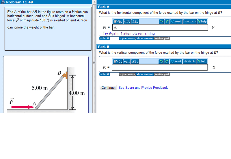 And the bar must be pressing against the hinge with that same force.. But that's not the correct answer as far as I know - actually far from it.. So I am clearly thinking wrong some place :( help me