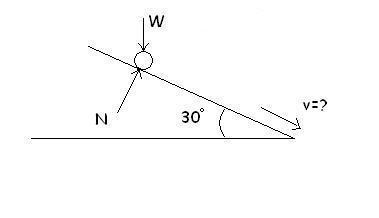 I was wondering if anyone could help me out with this problem. Using the drawing attached, I have to find the velocity of the ball at the end of the incline, where the ball starts from rest. This isn't the whole problem, but this is what is giving the entire class (M.E. Dynamics) a major headache. Our professor can't even solve it. We keep finding more variables than equations. If possible, do it without DiffEqu.