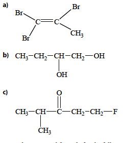 - One participant proposes a name for a compound as 1,1,2-tribromo-1-propene but expresses uncertainty about whether a CH3 group is a methyl group or part of the main chain.