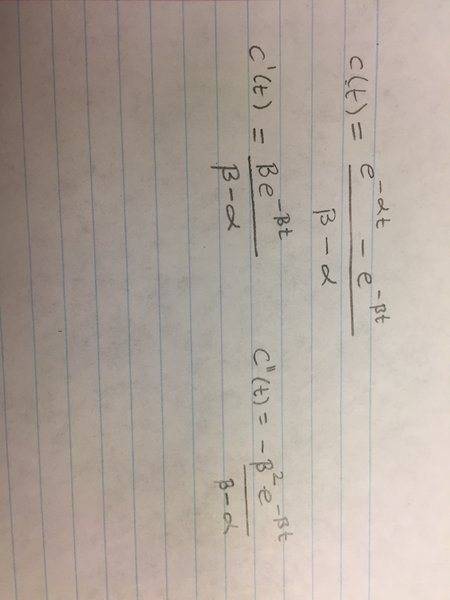 c(t) = [e^(−αt) − e^(−βt)]/ β − α