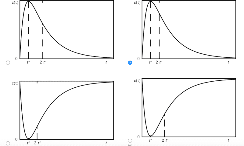 Suppose that antibiotics are injected into a patient to treat a sinus infection. The antibiotics circulate in the blood, slowly diffusing into the sinus cavity while simultaneously being filtered out of the blood by the liver. A model for the concentration of the antibiotic in the sinus cavity as a function of time since the injection:
