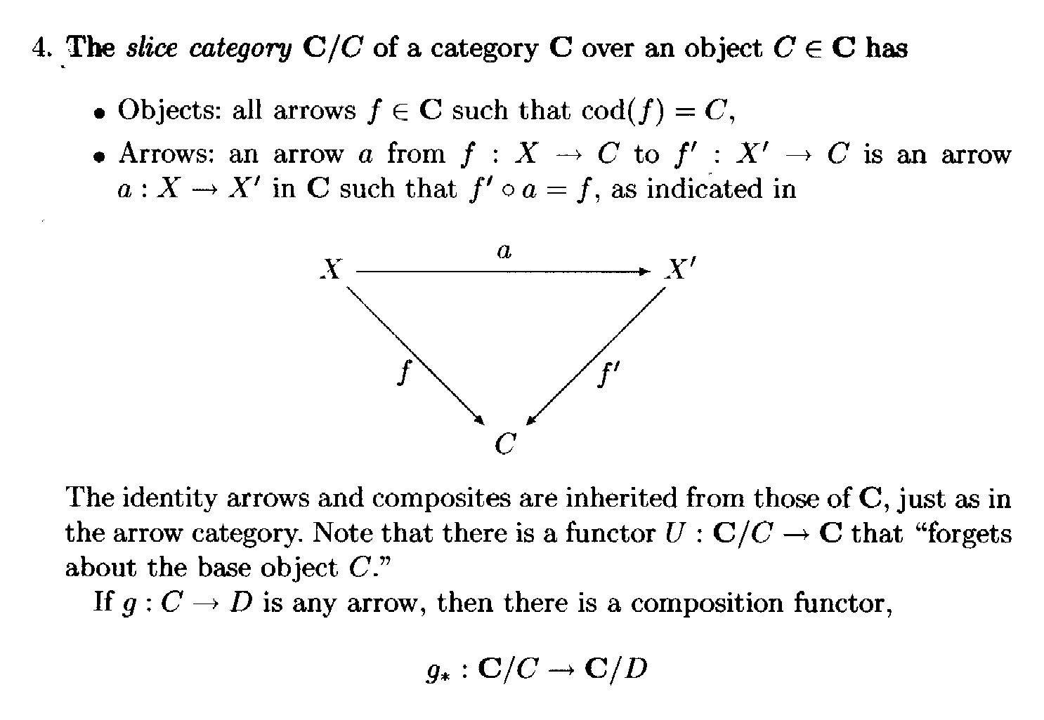 It may well help readers of the above post to have access to Awodey's definition of a slice category ... so I am providing the same ... as follows:View attachment 8393