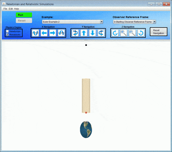 There is a spaceship traveling at some relativistic horizontal velocity with respect to Earth. In the spaceship is a pulse beacon positioned some distance above a long vertical pipe. At the bottom of the pipe is a light sensor wired to an explosive. From the reference frame of the spaceship, when the pulse beacon flashes, it will create a spherical light wave front that expands at speed c. Some of the light will travel directly down into the pipe triggering the explosion. The file Ref_Frame_Space.gif is intended to show this arrangement (without the walls of the spaceship). I am using a faceted circle for the wave front to make it obvious that a specific part of the wave front enters the top of the pipe and travels to the bottom without needing to go through the walls.Now consider the situation from reference frame Earth. The spaceship, pulse beacon and pipe are all moving horizontally. The beacon and pipe remain vertically aligned. Now, when the beacon flashes, from the point of view of Earth, the expanding wave front is at rest with respect to the Earth. It is centered at the location of the beacon at the time of the flash. The file Ref_Frame_Earth.gif is intended to show this arrangement. Note again that a specific facet of the wave front enters the top of the pipe and travels to the bottom without needing to go through the walls, just not the same facet as before. I’ve varied the elevation of the pulse beacon and I always get some part of the wave front making it down the pipe, just different parts.Anybody know how to run the gif files? They don't seem to run for me.