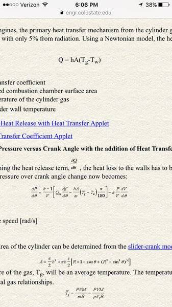 The link above takes you to a site I have found to be very helpful in my studies of the Otto cycle, but on this particular page, it depicts an equation for the rate of change of cylinder Pressure vs. crank angle, and in this particular equation, cylinder pressure itself is also a variable... or is it? They say that this equation will effectively solve the equation for cylinder pressure vs crank angle, but the first thing that perplexed me was that cylinder pressure was a variable in its own derivative, and second, how would someone go about deriving an actual equation for cylinder pressure vs crank angle from this?