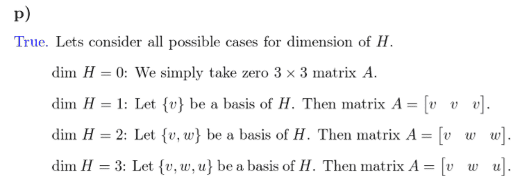 Let H be subspace of ##R^n##, then there must be matrix A with the form ##n\times n## so that H=col (A).