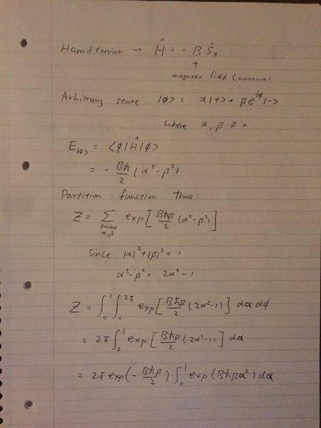 I've been trying to calculate the partition function for spin-1/2 particles in a magnetic field, however instead of summing over the eigenstates of the spin operator in the direction of the field, I've summed over all possible normalized states.