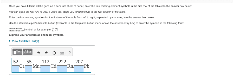 Help with Periodic Table Question, don't know what I'm doing wrong.
