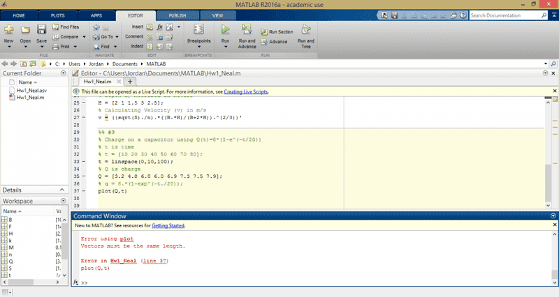- One participant notes that the user's time array (t) has more elements than the data array (Q), which prevents MATLAB from pairing them for plotting.