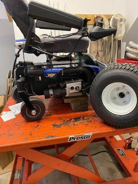 The discussion revolves around modifications to a Jazzy Pride 1121 power wheelchair, specifically addressing the challenges faced after installing larger tires that affect the chair's ability to climb inclines. Participants explore potential solutions, including changes to the motor, controller, and gearing, as well as alternative designs and components.