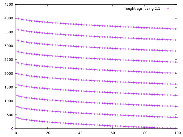 Now after writing the code, I would like to plot (s) as a function of (h). but what I will get is not a single plot, but a series of plots depending on the number of timesteps. the issue has to do with loops, but I am not sure how to get a single plot of (s) against (h) as it grows over a period of time.