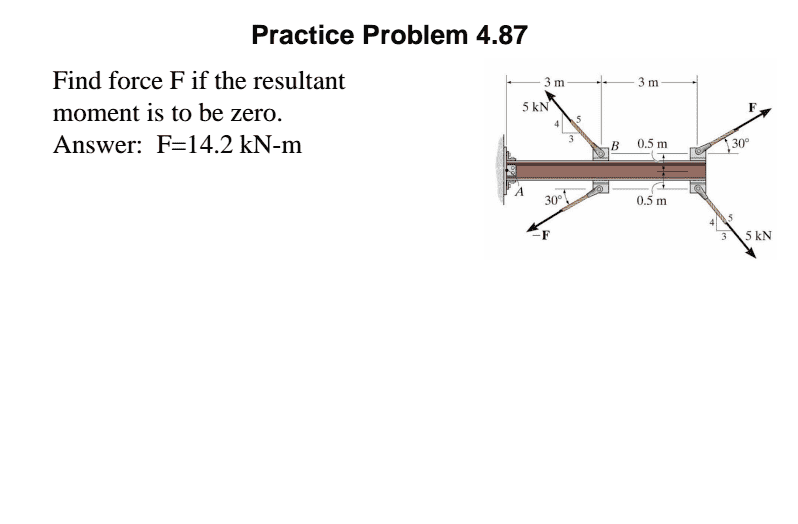Now back to this one. I separated each force into its components. I THOUGHT the perpendicular distanceof the 5kN forces was 3m and the perp distance of F was 1, but that didn't work out and I'm not getting the result. I saw a solution online