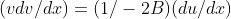 luckily, that's just a constant... Quite literally solve for ##v \frac{dv}{dx}## in terms of ##\frac{du}{dx}## in post 32, and plug it into post 16 equation. Don't forget about the ##u## substitution made in 16 either. If you do it correctly, watch the equation transform into a butterfly.silento said:View attachment 340974 . however -2B is in place of the mass