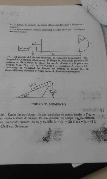 Whats is the final speed of the second box(mass = 1kg) when the first one (mass = 5 kg) has descended a distance equal to 0.6 meters in the rough ramp inclined 60° respect the x axis. Consider the spring is compressed a length x = 0.2 meters. The second box is tied to the spring and the system is released from its stationary state. For this case, consider the rope, the spring and the pulley are ideal (have no mass and the rope doesn't get elonged or contracted), the dynamic friction coefficient is 0.2, and the elasticity constant of the spring k=200 Newtons/meters?