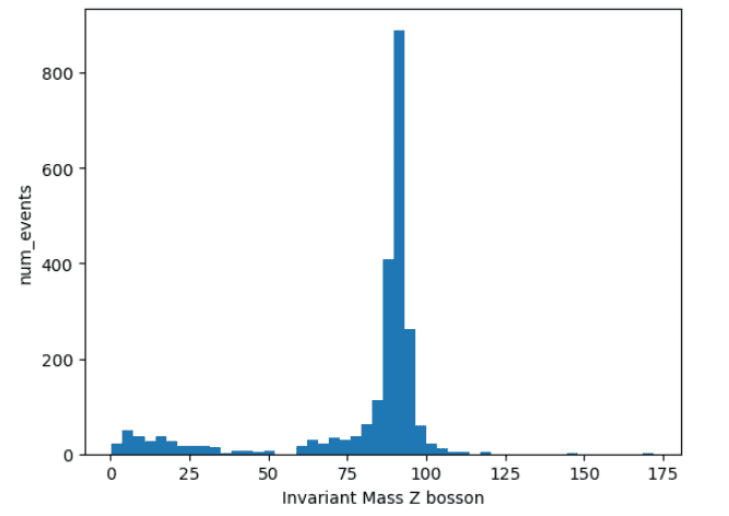 When I plot the histogram of Z boson invariant masses, I do not see anything unusual.