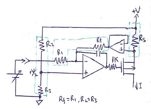 but Inverting input goes up by just Rhall * Δi