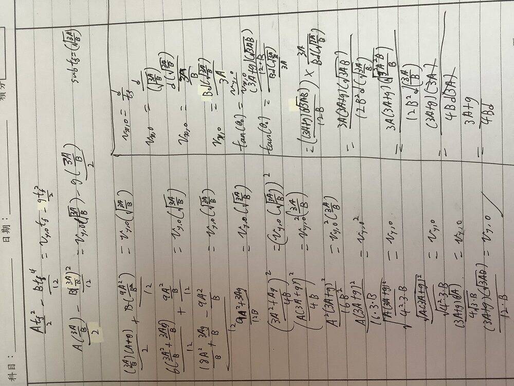 ## \frac {A t_f^2} {2} - \frac {B t_f^4} {4} = v_y,0 - g t_f^2/2##