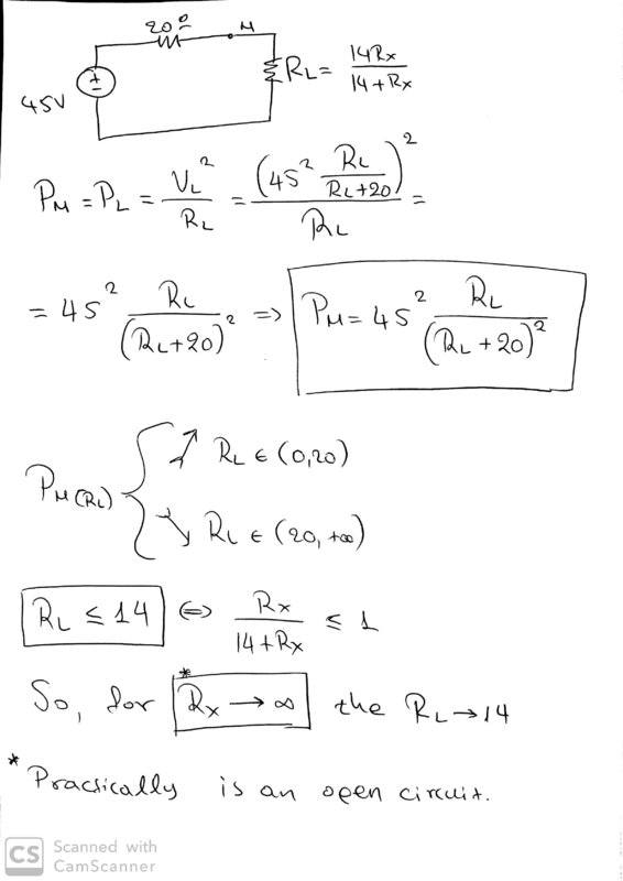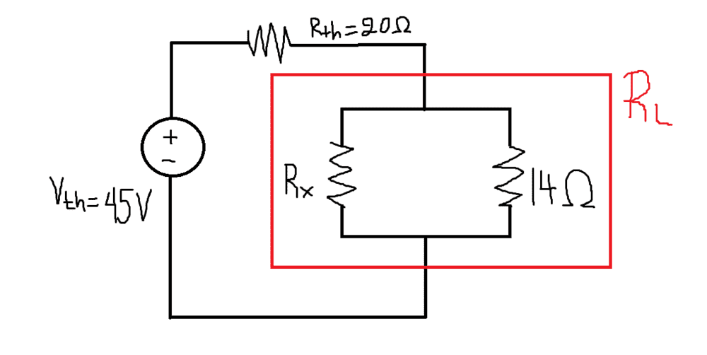 The discussion revolves around finding the value of Rx for maximum power transfer in a circuit, specifically using Thevenin's theorem. Participants are examining the relationship between Thevenin resistance (Rth) and load resistance (RL) in the context of a homework problem.