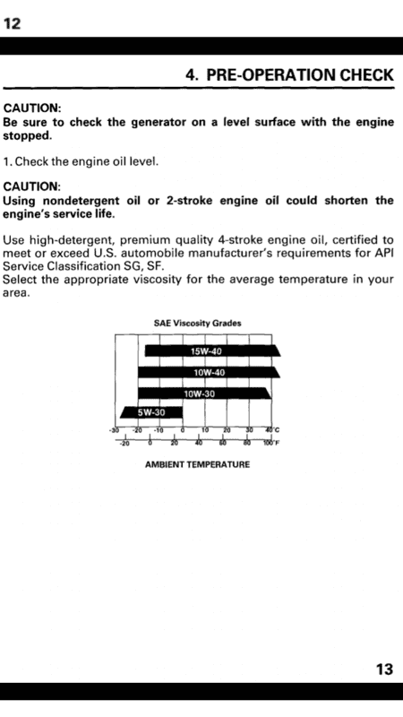 The optimal oil temperature range for the Honda EU 10i generator is best supported by using 10W-30 oil, particularly in moderate weather conditions. Users discussed the suitability of two oil grades: 4T 10W-30 and Coastal Synthetic Blend 5W-30, with a consensus favoring 10W-30 for its compatibility with the generator's specifications. However, for higher temperature environments, a transition to 10W-40 may be advisable to ensure longevity and performance of the generator.
