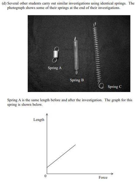 - Participants are attempting to understand how to graphically represent the deformation of spring C, particularly in relation to spring A. There is discussion about the characteristics of elastic versus plastic deformation and how these should be reflected in the graph.