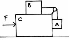 Block C (m= 4 kg) sits on a frictionless horizontal surface. Block B of (m