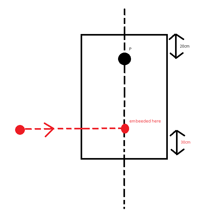 The discussion revolves around the physics of a bullet striking a metal plate that is pivoted at a point. The problem involves concepts from dynamics, specifically conservation of momentum and angular momentum, as well as the calculation of the center of mass (COM) of the system post-collision.
