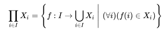 - ##S \triangleq \text{The set of all functions }I \longrightarrow \bigcup_{\iota \in I}X_\iota##