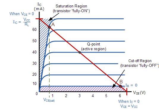 - ic = Vcc / Rl , where ic = collector current, vcc is the potential of the output circuit battery