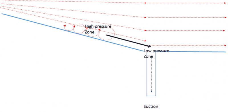 My attempt at an explanation Suction creates a localized low pressure zone ( ahead of the localized high pressure zone created by the stagnated flow within the boundary). This creates a new gradient with which this high pressure can disperse . As this gradient is in the streamwise direction this allows the energy to rejoin the flow as DPMy Question