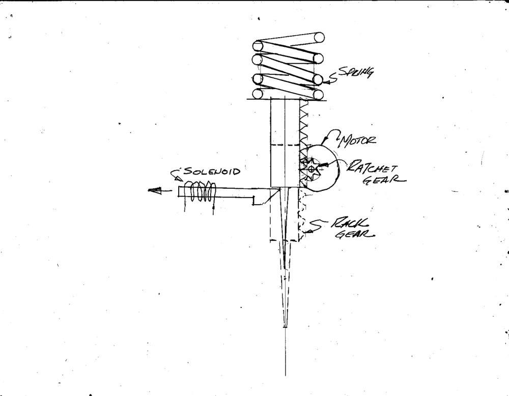 - One participant describes a mechanical setup using a pretensioned spring for needle insertion and seeks an electrical solution for retraction.