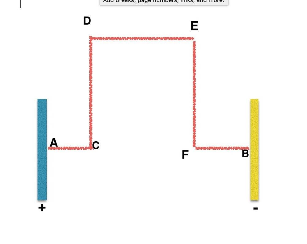 I agree that field lines will push the electrons from C to A and similarly from B to F, but how free electrons of our conducting wire will move from F to E to D and to C. Because for a part of the segment CD and FE the electric field is perpendicular to the movable path of electrons, and for the other part there is no field. Segment ED lies completely out of the field. So, electrons will move all the way through the circuit? Who will push them?
