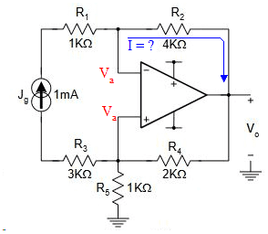 The opAmp network shown in figure 68 is a transimpedance amplifer that employs both negative and positive feedback. Assuming that the op-amp is ideal, calculate the value for the output voltage for Jg is 1mA.The circuit and question are this: