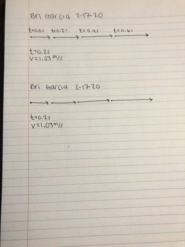 Note: Include enough points to clearly show the motion. Choose a reasonable time interval in order to do this, possibly 0.1 or 0.2 seconds. Include velocity arrows and velocity change arrows in your diagram. Clearly label each point.