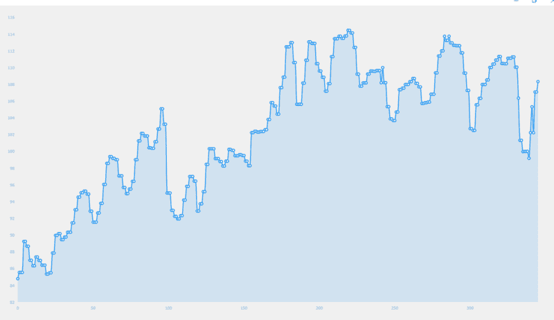 I was seeing a lot of noise at 1st, so I started taking the average of every five samples and plotting that.