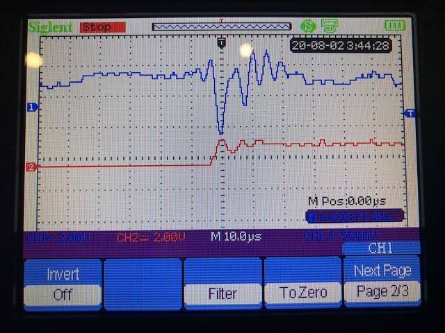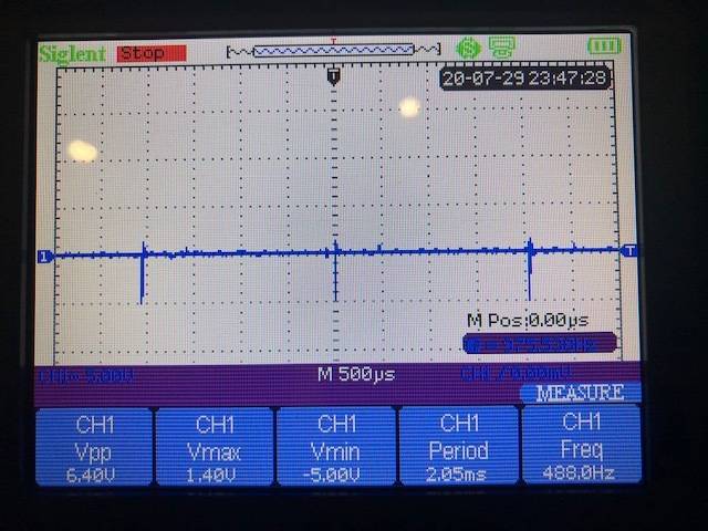 http://www.balmar.net/PDF/regulator info s/MC-614.pdfThe spacing of the drop outs leads me to suspect they are synchronous with the state control switching of the voltage regulator - I doubt the belt speed would produce spikes that are 2ms apart like that, it seems more like the micro-controller frequency is driving the spacing of these drop outs. Moreover, changing the van engine idle speed does not change the spacing of these drop outs. I suspect the output of the regulator that is driving the alternator field is not right. If my understanding is correct, its a pwm current output, not a voltage output, so maybe hard to monitor directly.