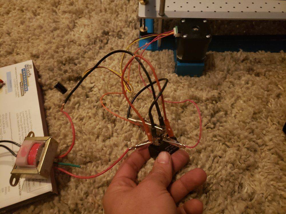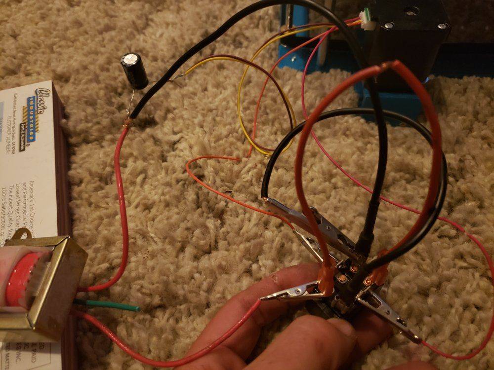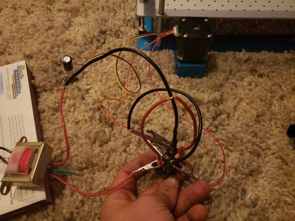 The discussion revolves around wiring a bipolar stepper motor to switches for a laser engraver, focusing on the practical aspects of connecting the motor with available components like a transformer, capacitor, and switches. Participants explore the requirements for controlling the motor's movement in both directions and the potential need for a controller.