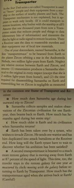 Initial distance plays a crucial role in time calculations in spacetime problems, particularly in understanding how aging is perceived during transmission. In the discussion, it is clarified that the transmission process creates an identical copy of the original, maintaining the same age regardless of the distance traveled. The difference between parts (b) and (e) lies in the object's movement, affecting the time taken to reach the destination, but not the aging of the transported individual. The participants conclude that the time taken for the journey does not influence how much the transported individual ages, as local clocks advance uniformly. Ultimately, the discussion emphasizes that objects moving at the speed of light do not age, reinforcing the principles of relativity in spacetime scenarios.