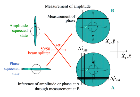 "When two squeezed input fields (here without coherent displacement) are superposed on a (balanced) beam splitter, the two output fields individually show a rather large thermal uncertainty area, and are entangled"Then in the same experiment, they say they obtain a state entangled in phase and amplitude by interfering amplitude squeezed light with phase squeezed light, and that the stronger the input squeezing, the stronger the output entanglement. How does that work?