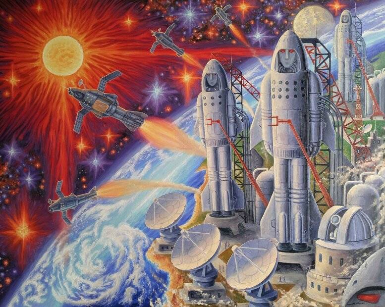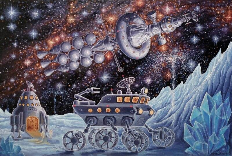 Thank you, I remember these stamps, I had them as a child because i lived in USSR. I love this old sci fi art style because back then people were inspired and dreamed. I hope this will happen again soon with renewed vigor.