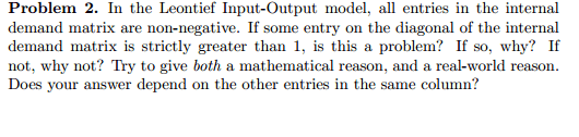 where d is external demand and C is the inter-sector internal demand matrix. The question is asking if it is OK to have cii > 1 for some i, and if not, why not.