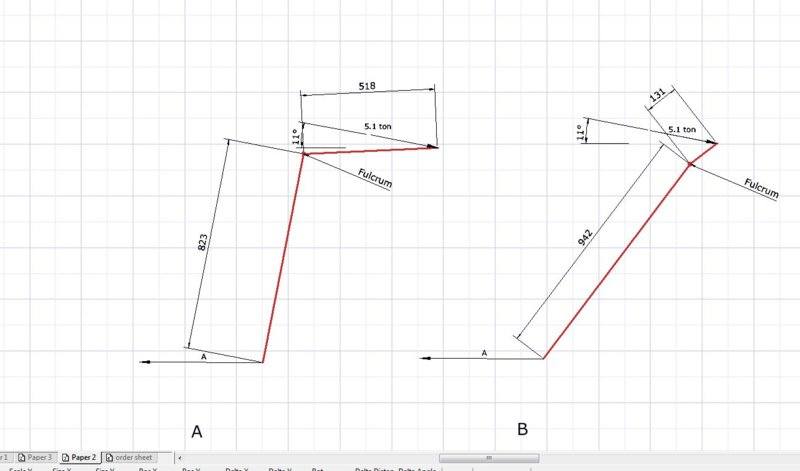 Also the force is a ram, do you need to workout a resultant force with the x and y-axis or can you just assume 5.1 ton is acting on the pivot arm.
