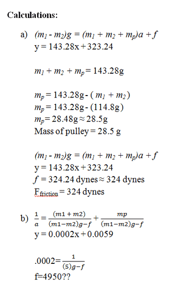 Basically, I need to calculate the mass of the pulley and friction using data that I collected.